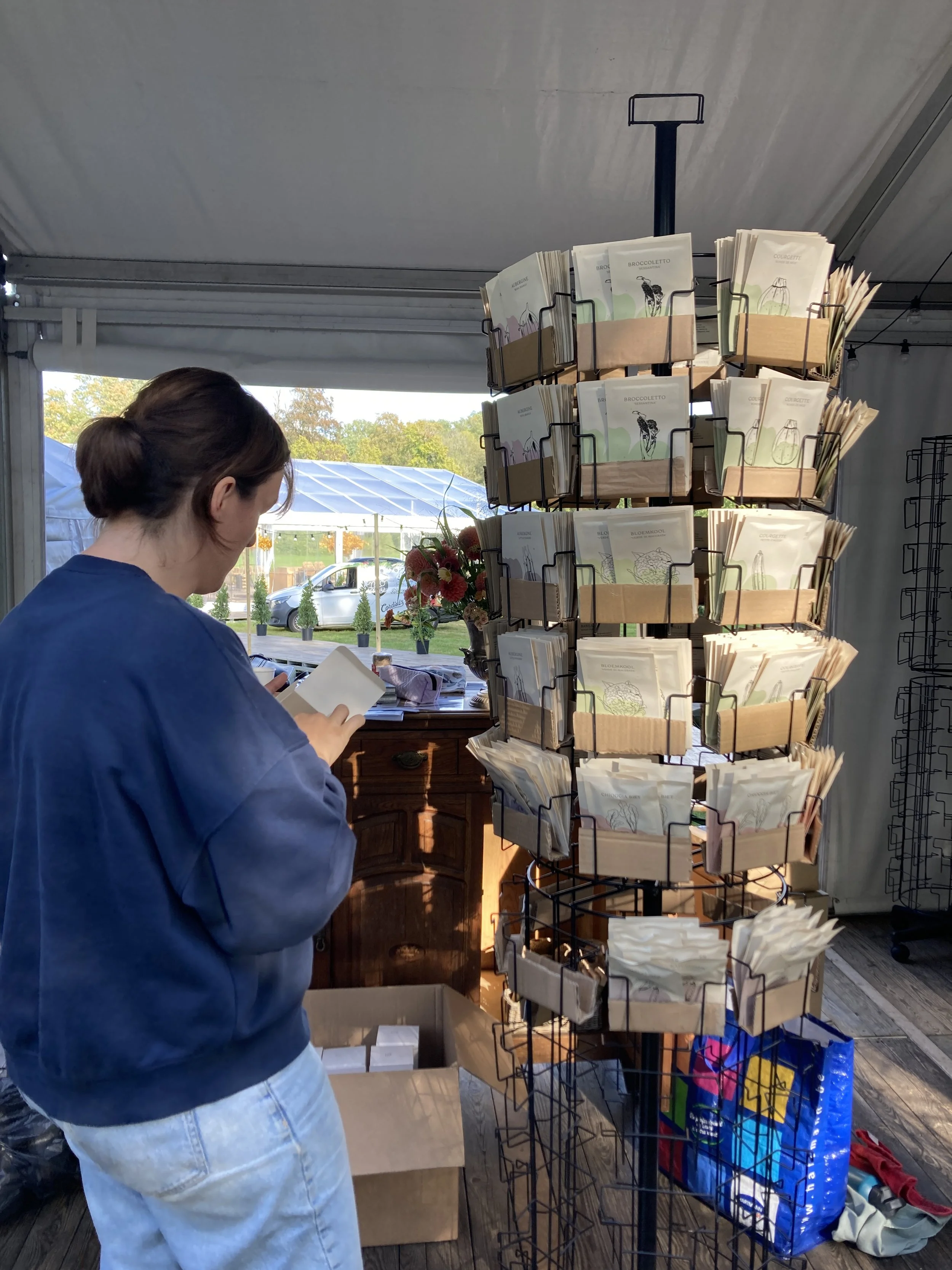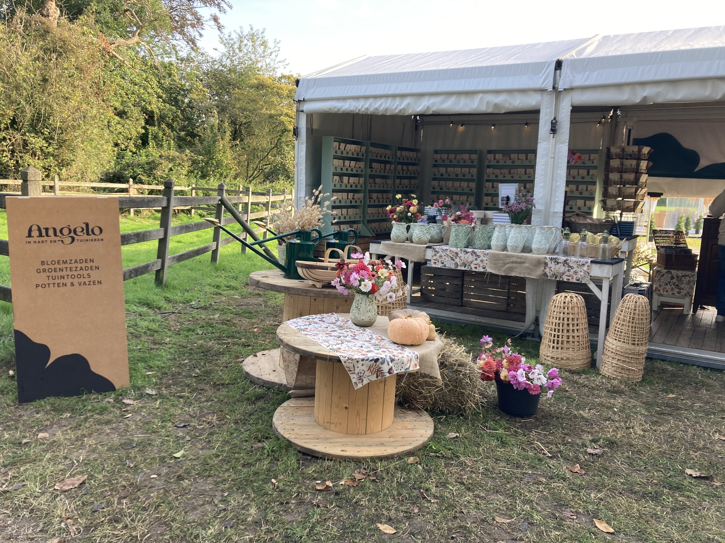 Volledig in de stijl en sfeer van Angelo ontwierpen we een grote beursstand op de Tuindagen van Beervelde in oktober 2023 en voor de twee edities van 2024. De zadenzakjes die Revista gemaakt heeft, waren er te koop, net als de boeken Tomaat en Dahlia en verschillende wenskaarten.